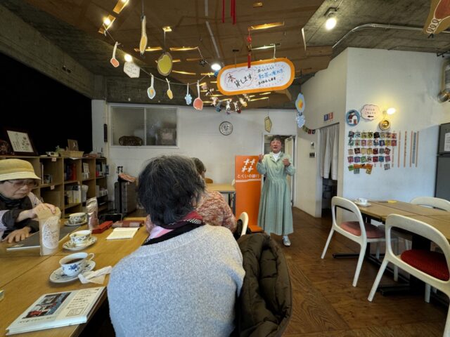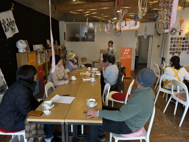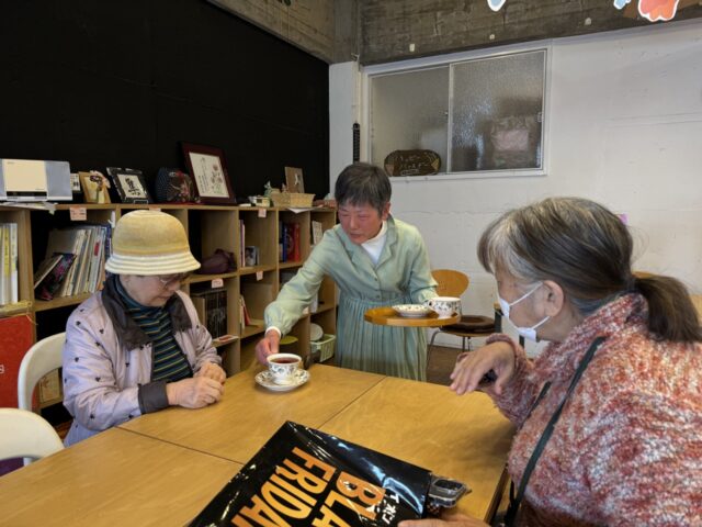 団地にお住まいの朴さんが金山さんの「本貸します」のとくいをひきだし、添田店長が朴さんの「紅茶」のとくいをひきだして、おいしい紅茶を飲みながら、本を紹介したり借りたり読んだりする会を開きました。